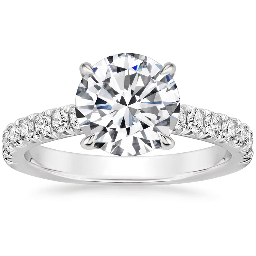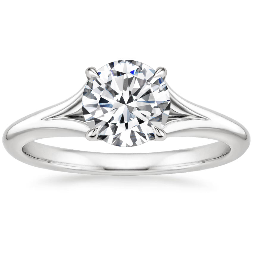It doesn’t get extra traditional than this four-prong setting, which has a rounded inside edge for elevated consolation.