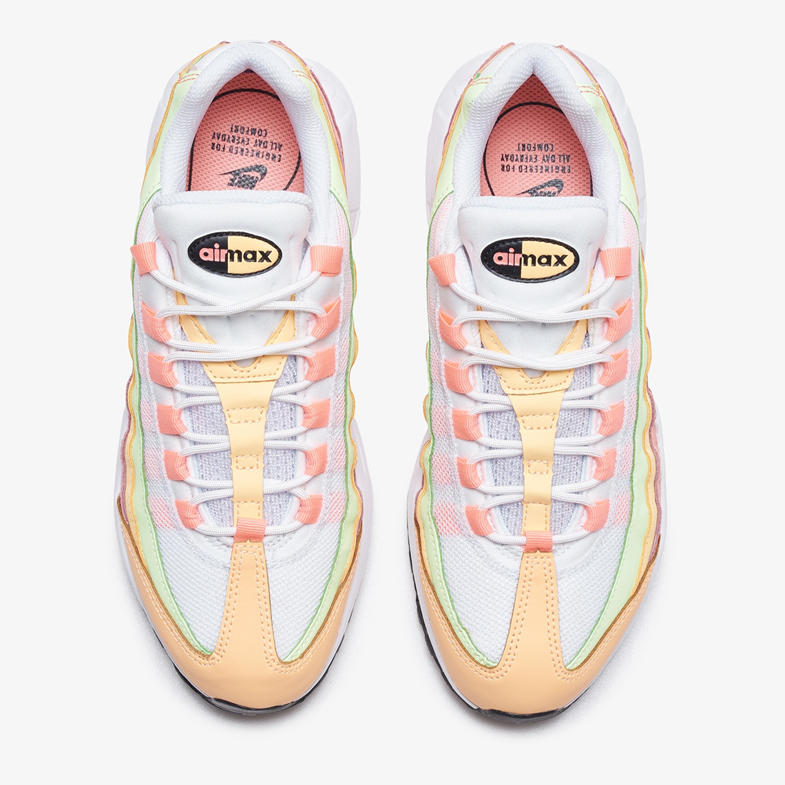 Whereas sole items are saved easy in “Black/White,” this Air Max 95‘s uppers are clad in summer-ready pastels. The closest overlays to the Air Max midsole indulge within the lace loops’ “Atomic Pink” hue whereas in-between layers boast a faint “Volt” and the titular “Melon Tint.” Reinforcement on the toe and up the “White” tongue additional partake within the orangish scheme, simply as cut up “airmax” branding does.
